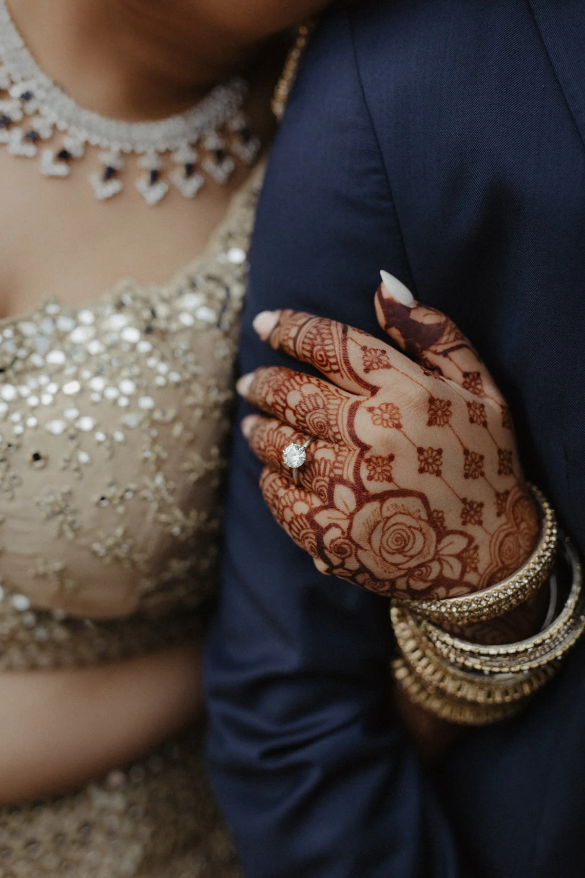 A rush of swirling gowns, florals and diamonds cascading from the ceiling, navy and gold tones illuminated by candlelight — there is no shortage of details that had us swooning over Nitya and Harsha’s wedding weekend.