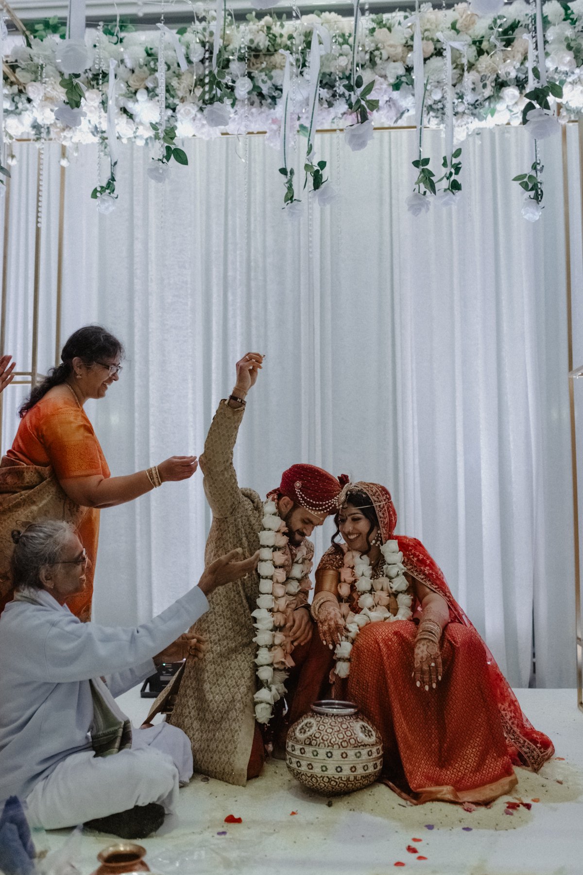 Photography & Cinematography: Shadow Shine Pictures Wedding Coordination and Planning: Touch of Elegance Hair Stylists & Makeup Artists: J Hobby Studio Mehndi: Henna Beauty By Krupa Bridal Lehenga Choli: Pernia Pop Up Shop Groom Sherwani: Mebaz Groom Tux: Manno Clothing & Tailoring Floral Design: Bridal Insignia Events Rentals & Decor: Bridal Insignia Events DJ: DJ Akaash Catering & Bar Service: The Henry, Autograph Collection Wedding Cake: Sweet Heather Anne Venue: The Henry, Autograph Collection